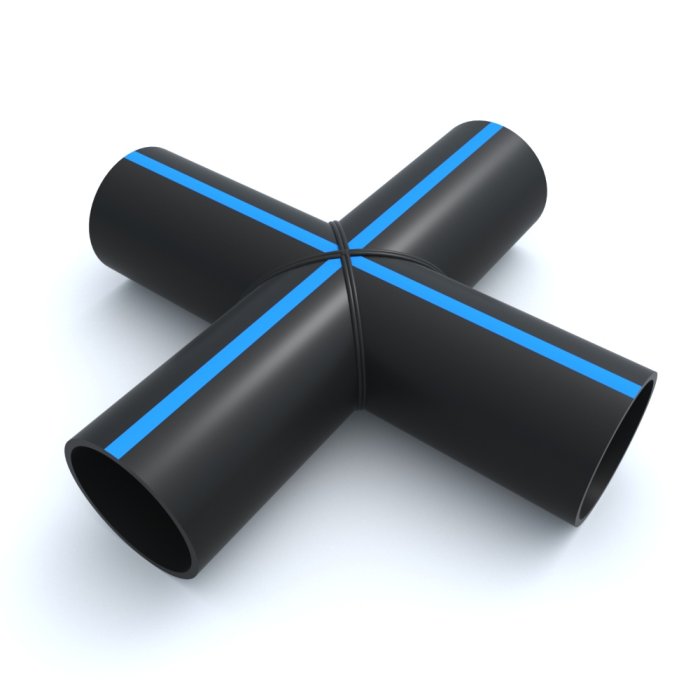 Крестовина сварная равнопроходная ПНД 90º 630x450x1530 мм SDR-13,6 широко используется при монтаже полиэтиленовых труб и трубопроводов. Крестовина сварная равнопроходная изготавливается по ТУ 22.21.29-001-65568415-2018 из полиэтилена низкого давления марки ПЭ100.