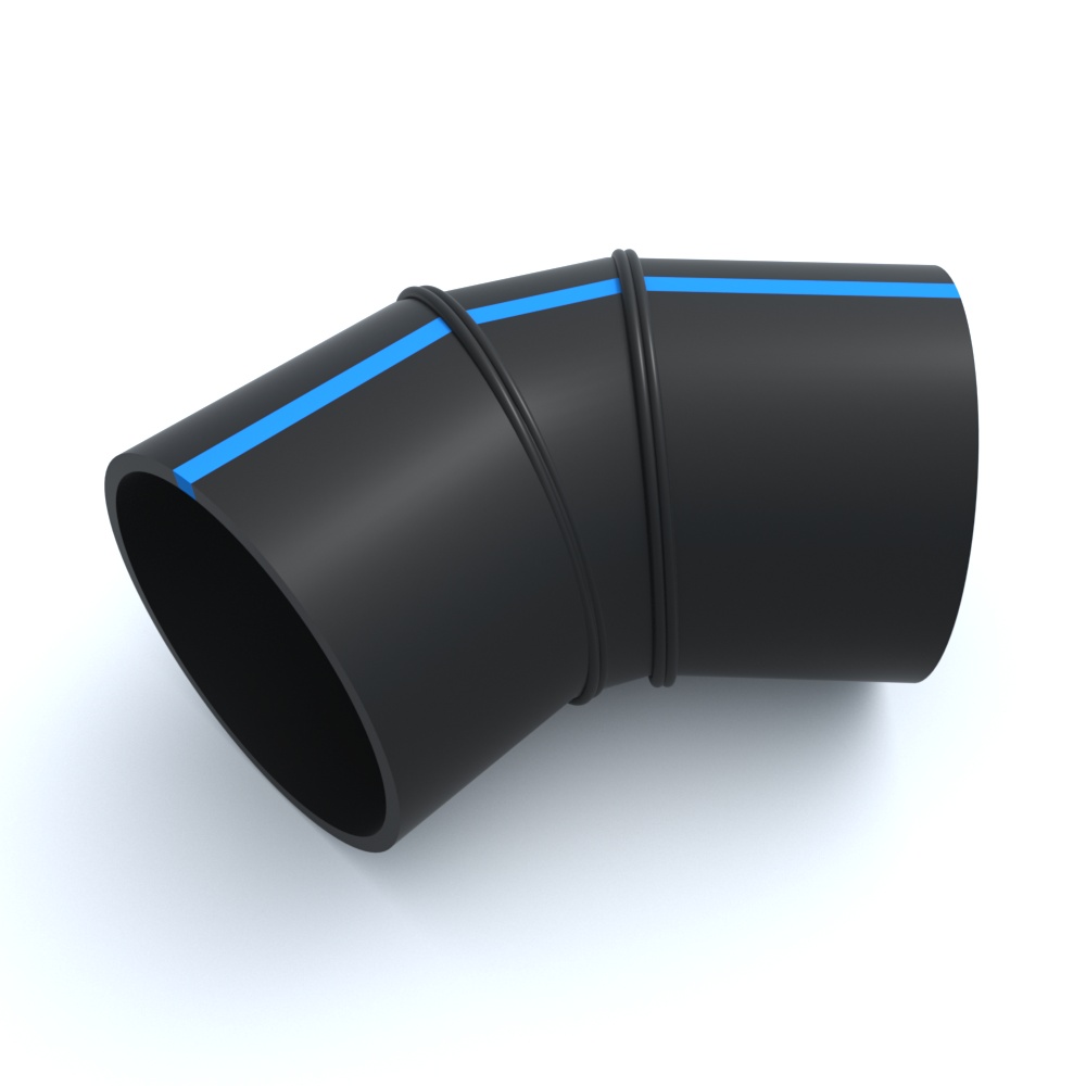 Отвод сварной ПНД 45º 500x330x479x280 мм SDR-17 позволяет изменить направление прокладываемого трубопровода под различными углами под задачу